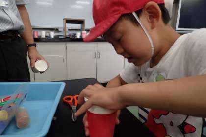 高学年は実験室で工作しました。学校に帰ってからもたけのこのみんなに実験したことを話してくれました!またたけのこでも作ってもらいたいと思います!