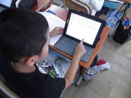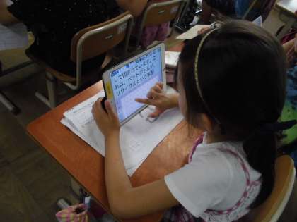 気になる記号を本で調べた後,ロイロノートを使ってプレゼンにまとめています。