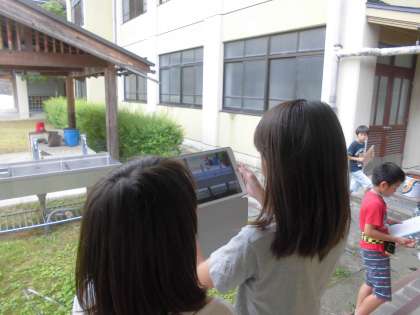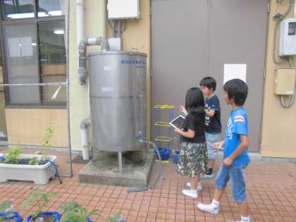 学校では1日にどれくらいの水を使用しているのかを予想する目安として,校内の蛇口の数を数えに行きました。「いつも使っていない場所にある蛇口は写真で撮ってこよう!」と声をかけると,蛇口の数を数えることはもちろん,みんなが見つけていない場所を見つけようと校内のあちらこちらを探し回っていました。みんなで調べた結果全てを合わせると,200を超える蛇口が学校にはあったようです。