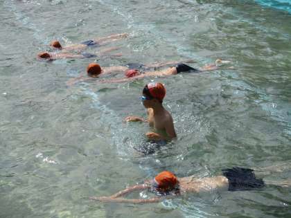 4年生でクロールについて学習したことを思い出しながら泳いでいました。