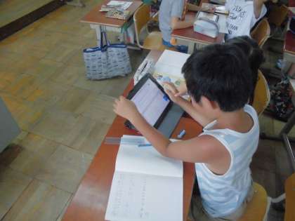 この時間は,琵琶湖の水がどのようにしてきれいにされ,水道水となっているのかについて調べました。浄水場の仕組みについて詳しく調べる事ができていました。
