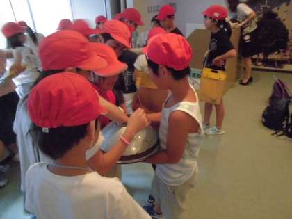 普段は離れた位置からしか見ることができない信号機であったため,大きさに驚いていました。信号機の中には光が遠くまで届く工夫として中がザラザラしていたようで子たちは,その工夫にも驚いていました!