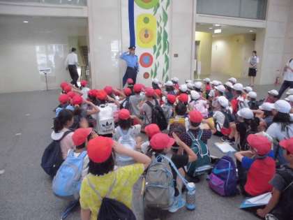 最後は警察官の方の持ち物を見せてもらったり,敬礼の仕方を練習したりしました。