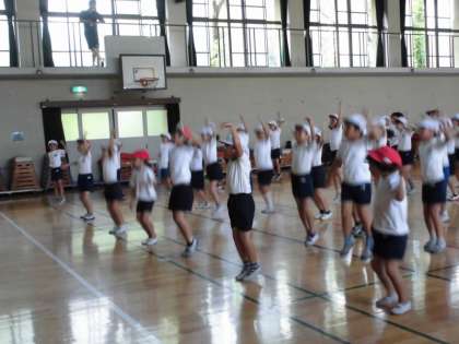 3年生が交流の体育でダンスの練習をしています!難しい振り付けですが,夏まつりで発表することを目指し,がんばっています!交流の体育から帰ってくると,「疲れたけどがんばった!」「がんばったしお腹すいた!」と達成感に満ち溢れています!