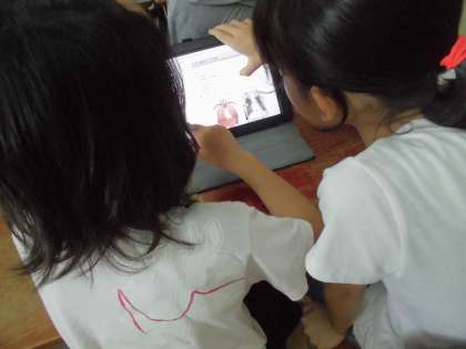 保健の学習で臓器の働きについて学習しました。二人一組でタブレットを用いて,働きについて調べ,資料から読み取ったことをまとめていました。