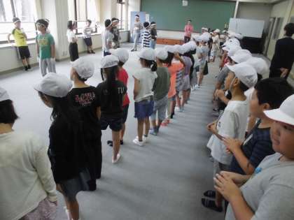 応援団のお兄さん,お姉さんに教えてもらいながら,練習しました。
