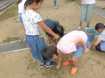 運動会に向けてグラウンドの草ぬきや石ひろいを高学年で行いました。当日,安全に運動会が行えるように取り組むことができました。