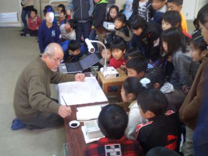 4年生の社会で「京都の伝統産業」を学習しています。今日は、藤城校区にお住まいで京友禅の下絵づくりのお仕事をされている方に来ていただきました。京友禅ができるまでの行程のお話を聞いたり、実際に下絵を描いているところも見せていただいたりしました。子どもたちの目は釘づけです。その後、出来上がった京友禅を見せてもらい、下絵の体験もさせてもらいました。