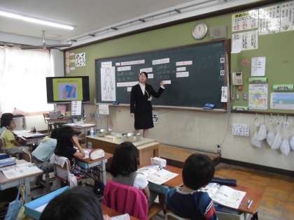 教育実習で来ている田中先生と,身の回りの清潔について学習しました。