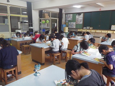 双眼実体顕微鏡の使い方を練習しました。今日は自分の指紋や爪,教科書を観察しました。双眼実体顕微鏡で見る20倍の世界にびっくりしていました。藤城小学校には1人1台あるので,しっかりと練習できました。これからはいろいろな実験や観察に使っていく予定です。