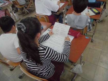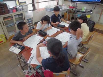 エコな生活を送れていたかということに対して,夏休み前と夏休み後の生活を振り返り診断表を作って頂きました。自分の診断表を見ながらグループで話し合い,今後の生活の目標をたてました。