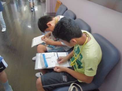 ショッピング中に購入した品物のレシートをもとにして収支記録帳に買った物を記入していました。また,普通預金を電子マネーへ移す作業などショッピング以外のお金の動きもしっかり記入していました。