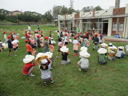 運動会で踊った花笠踊りを特別支援学校のお友達と福祉農園の方々に見ていただきました。