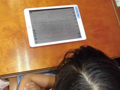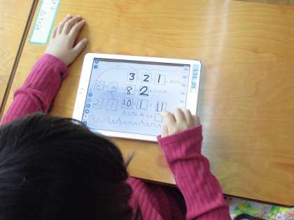 今日はタブレットを使って,繰り上がりのあるたしざんの説明を勉強しました。