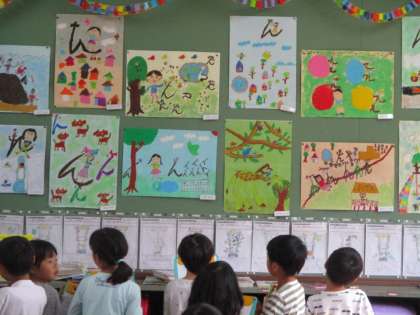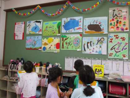 お話の絵が完成したので,学級で鑑賞会をしました。