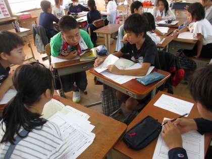 未来をよりよくするために,自分が大切だと思うことについて,グループ交流しました。説得力のある意見文を書くために,お互いに質問をしたり,助言をしたりしました。活発に意見を交流できました。