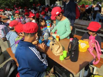 動物園ではグループに分かれ園内をまわり,先生を探すスタンプラリーをしました。