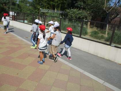動物園をグループでまわり,「ゴリラおっきいなぁ!人みたい!」「ゾウのウンチおっきい!さわれた!(展示物)」と嬉しそうに話していました。動物園や電車の中ではきまりやルールを守って行動できました。
