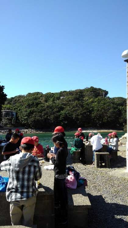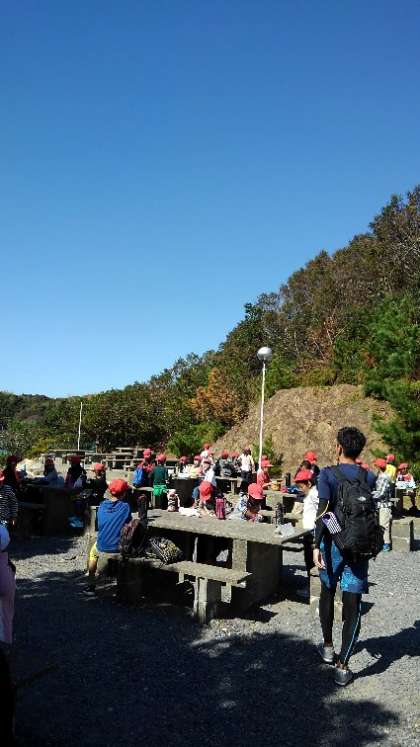 野外炊飯場で昼食を食べます。
