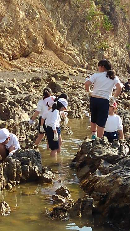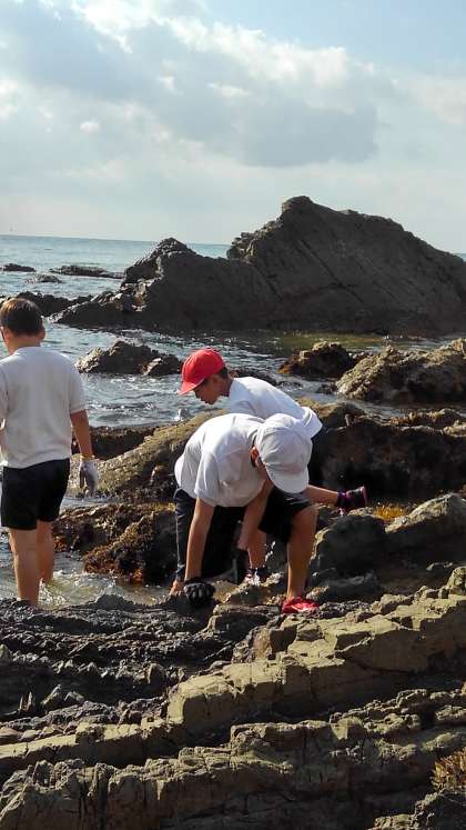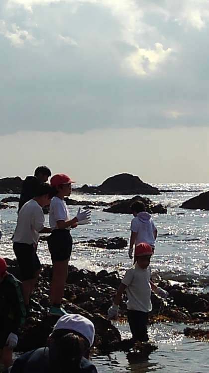 積極的に海のなかに入って行く子や静かに潮溜まりを見つめて観察力する子など、それぞれ楽しんでいます。