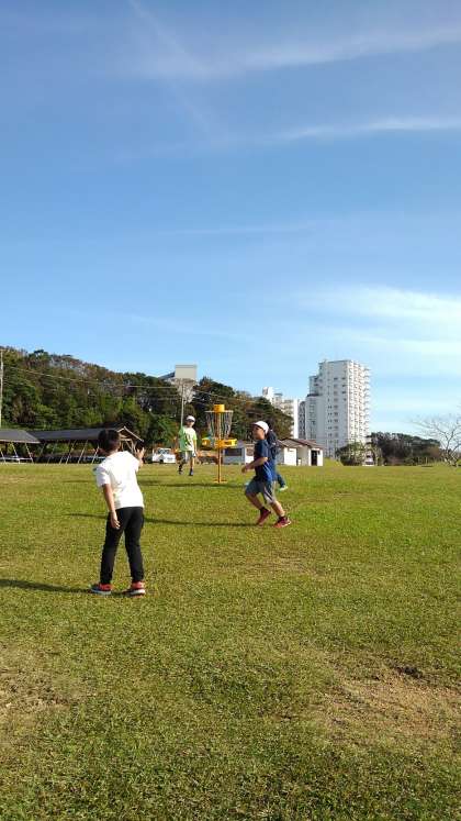 サッカー バドミントン フリスビーなど広い広場でのびのび遊んでいます。