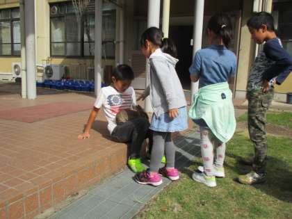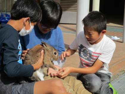 ふれあい週間で学校で飼育しているうさぎとふれあいました。最初は怖がっていた子も一度触ると「また触りたい!」「もう一回並ぶ!」と楽しそうにしていました!