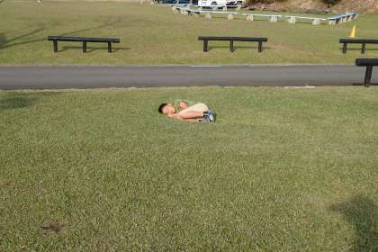 みんながスポーツでエネルギーを発散する中,逆にエネルギーの充てんをしている人を発見しました。本人が言うには,「寝て」るそうです。
