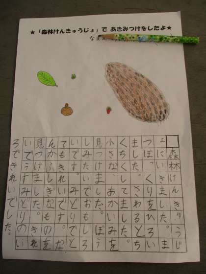 森林研究所から学校に戻った後,見つけた秋をカードにまとめました。