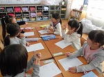 先日行った森林研究所で拾ったどんぐりやまつぼっくりなどを使って,どんな遊びや工作をするお店にするか,みんなで考えました。