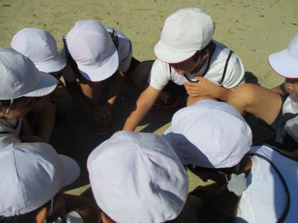 毎時間,ハンドベースボールの試合をする前に作戦タイムをとっています。