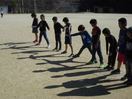 理科の学習で外に出た時に天気が良かったので「かげおくり」をしている子達がいました。