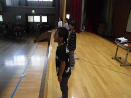 今週から,体育館で学習発表会の練習をしています。大きな声を出すことや,大きな動きで演技することにまだ四苦八苦していますが,みんな一生懸命がんばっています。
