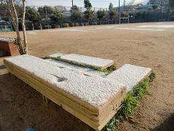 3月なのに冷え込んだ朝、小雪が降って運動場周りの花壇や朝礼台がうっすらと雪がつもっています。今日は6年生を送る会。寒い中ですが、体育館はみんなの熱気でいっぱいになりそうです。