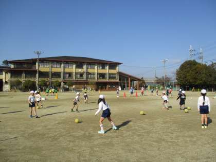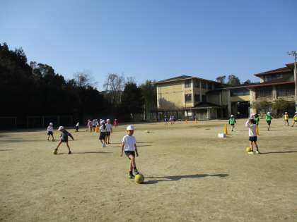 ボールけり運動をしていいます。試合をしたり,二人や三人でパスの練習をしたりしたいます。みんな楽しそうです。