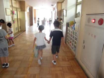 生活科の学習で,2年生と学校探検をしました。優しいお兄さん,お姉さんのエスコートで上手に学校の中をまわることができていました。振り返りでは,「2年生と学校探検をして楽しかったです。」という感想が多くありました。