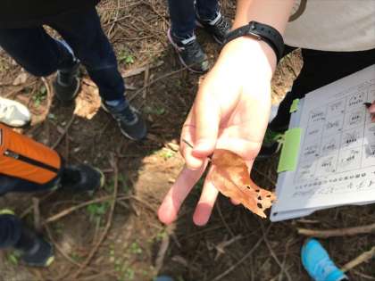 ツルツルの石、鳥の羽、虫の食べ跡のある葉などたくさんの物を見つけたようです。