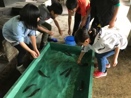 一瞬でつかみ終わる子もいれば魚が苦手でなかなかつかめない子も…