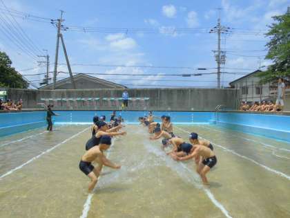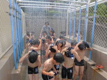 小学校で初めての水泳学習でした。心配していたお天気も回復し,とても気持ちよかったです。楽しそうに水を掛け合い,バディのお友達の体調チェックもしっかりできていました。