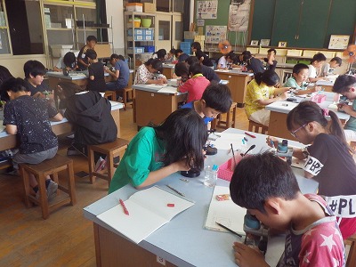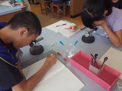 今日は解剖顕微鏡と双眼実体顕微鏡でメダカの卵を観察しました。ケースに番号を付けてメダカの卵を配りました。自分が観察を続ける卵を決め,子メダカになるまで観察する予定です。「子メダカになるのに1週間ぐらいかかるかな?」「自分の卵は,あと3日くらいかな?」という声が聞こえてきました。
