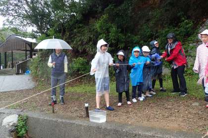 それぞれのグループで「タ〜コ,タ〜コ!」といったように,入っていてほしいものの名前を唱えながらロープを引く。