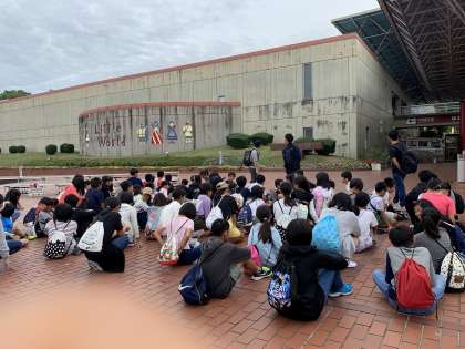 ナップサックを背負って準備万端で,今か今かと開園を待っています。