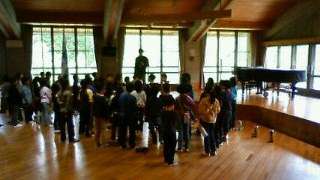 最終日の朝は雨が上がり、今日こそ外の活動が出来そうです。シーツや布団をきちんとたたみ、部屋をきれいに掃除してから朝の集いです。山の家の活動を最後までがんばります。