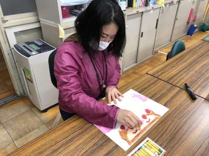 きょうはせんせいのすきないちごのけーきのえをかきました。