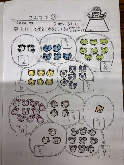 しゃしんは さんすうの がくしゅうぷりんとです。ただしく かずを かぞえられたかな?