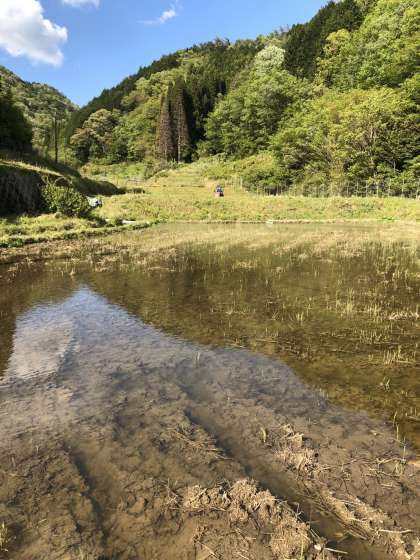 田植えをする前に代かきというのをするのはご存じでしたか。土をほぐしてやわらかくし,水を入れる作業のことです。これをすることによって田植えがしやすくなります。5年生の社会は,第一次産業について学習します。日ごろ食べているものや使っているものがどこからきているのかをこれから一緒に学んでいきましょうね。