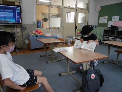 お気に入りの絵本の読み聞かせを披露してくれました。絵が見えやすいように工夫して,上手に読んでくれました。