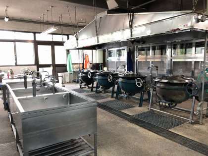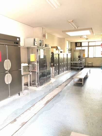 ひんと2 3にんの ちょうりいんさんが こころを こめて りょうりを つくって くださる ところです。