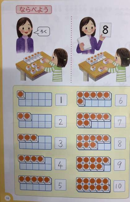 きょうかしょの16ぺえじにすうずぶろっくのならべかたなどがのっています。