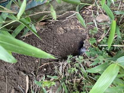 穴を一生懸命掘っているので,顔も前足も砂がついて黒くなってきました・・・