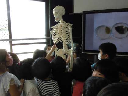 交流クラスのお友達と学校探検をしました。音楽室や家庭科室など楽しそうな部屋がたくさん!理科室ではガイコツさんと握手をしましたよ〜!いろんな部屋に行って勉強をするのが楽しみです。